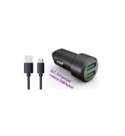 Brzi autopunjac 3.0 USB / USB type C, punjenje dva uredjaja istovremeno, prilozen USB kabl type C, namenjen za razlicite aparate.